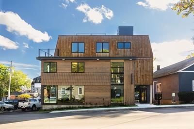 After breaking ground just a year ago, Winter Holben has completed its mixed-use, three-story headquarters—a showcase of thoughtful design, community connection, and sustainability. The new building includes the firm’s studio, 3 Walker Contemporary, a ground-floor art and design gallery, and three apartments, including both market-rate and affordable units.