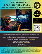 Seacoast Six of Portsmouth NH, a local payment processing company that provides cost-effective solutions for merchants and restaurants, is holding a fundraiser at Black Rock Social Club on Tuesday, June 2, from 5 p.m. to 8 p.m. to benefit nonprofits Great Bay Services of Dover, NH and Sanford, Maine, and I Got Bridged of Portsmouth. Guests will enjoy Black Rock Social Club's full suite of bowling, golf simulators, axe throwing, darts, billiards, and flight and Formula 1 racing simulators. They are also welcome to purchase food and beverages during the event. One hundred percent of the proceeds will be donated to both nonprofits. Great Bay Services enriches the lives of adults with intellectual disabilities by offering day programs, recreational activities, case management and independent living support. I Got Bridged provides free rides to medical care, food programs, church, and recovery support to Seacoast residents.